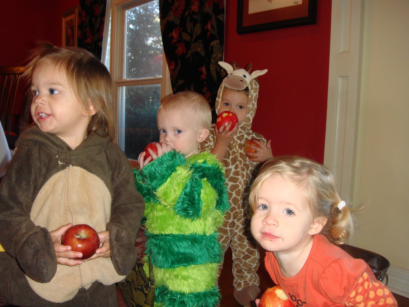 We started trick or treating early in the neighborhood I grew up in over on Golden Oaks. We went to the Wardlow's House and met up with Sam (the dinosaur) and went to the Nickell's, Cooks, and Jackson's house (Amelia and Sam's pediatrician!) We had an entourage helping the kids trick or treat- both of Sam's sets of grandparents and parents, and Amelia's parents and one set of grandparents. It was quite comical.